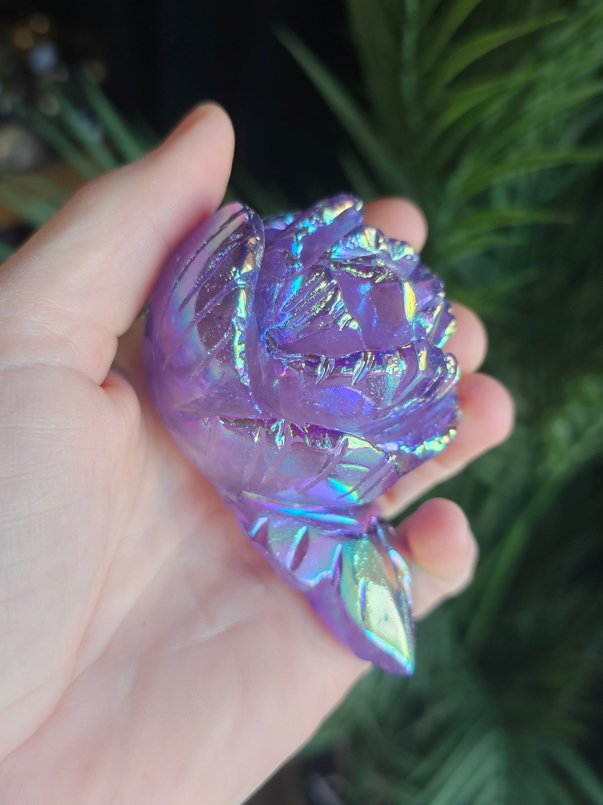 Aura Coated Amethyst Rose Bud Carving