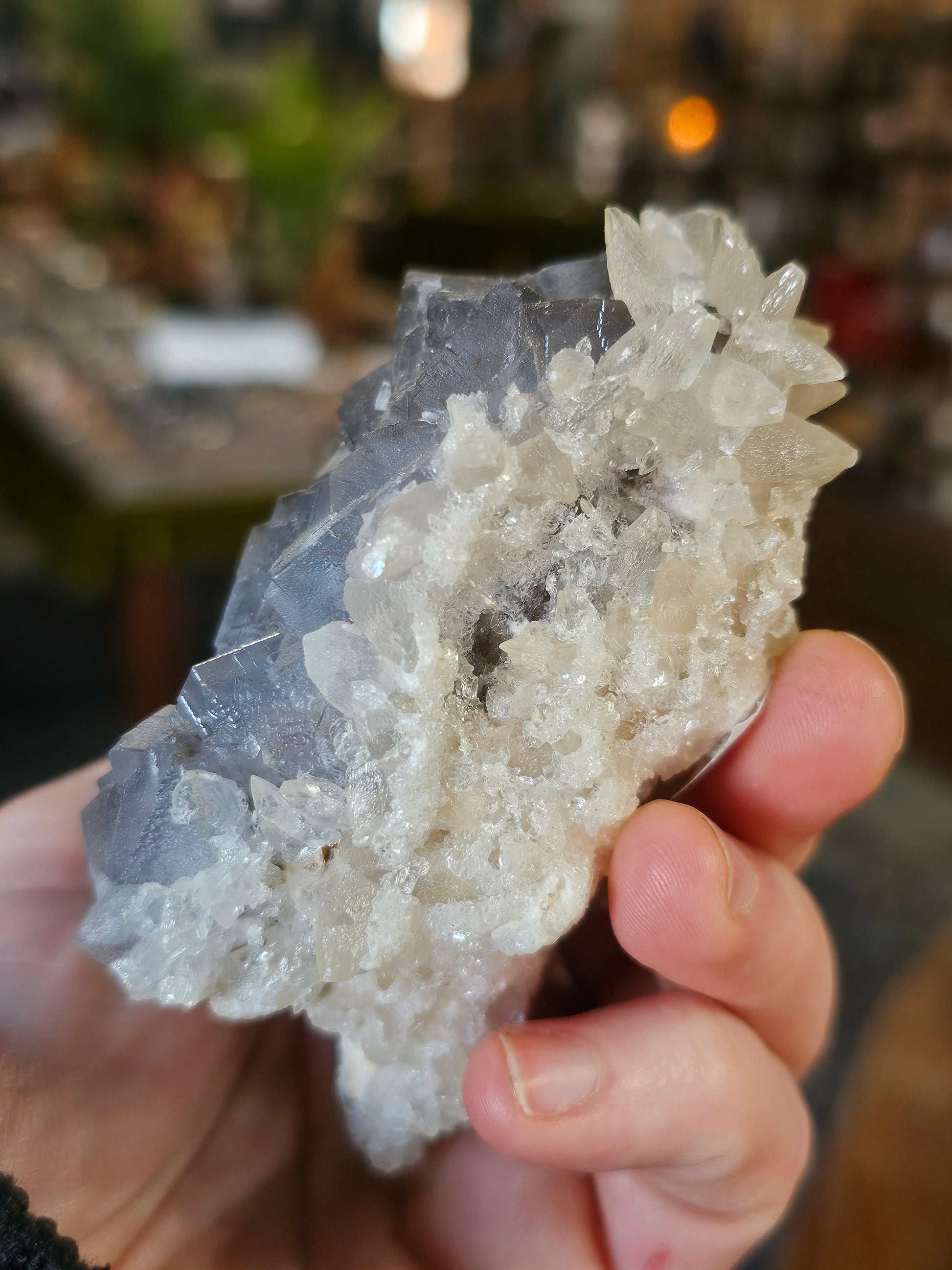 Calcite on Fluorite