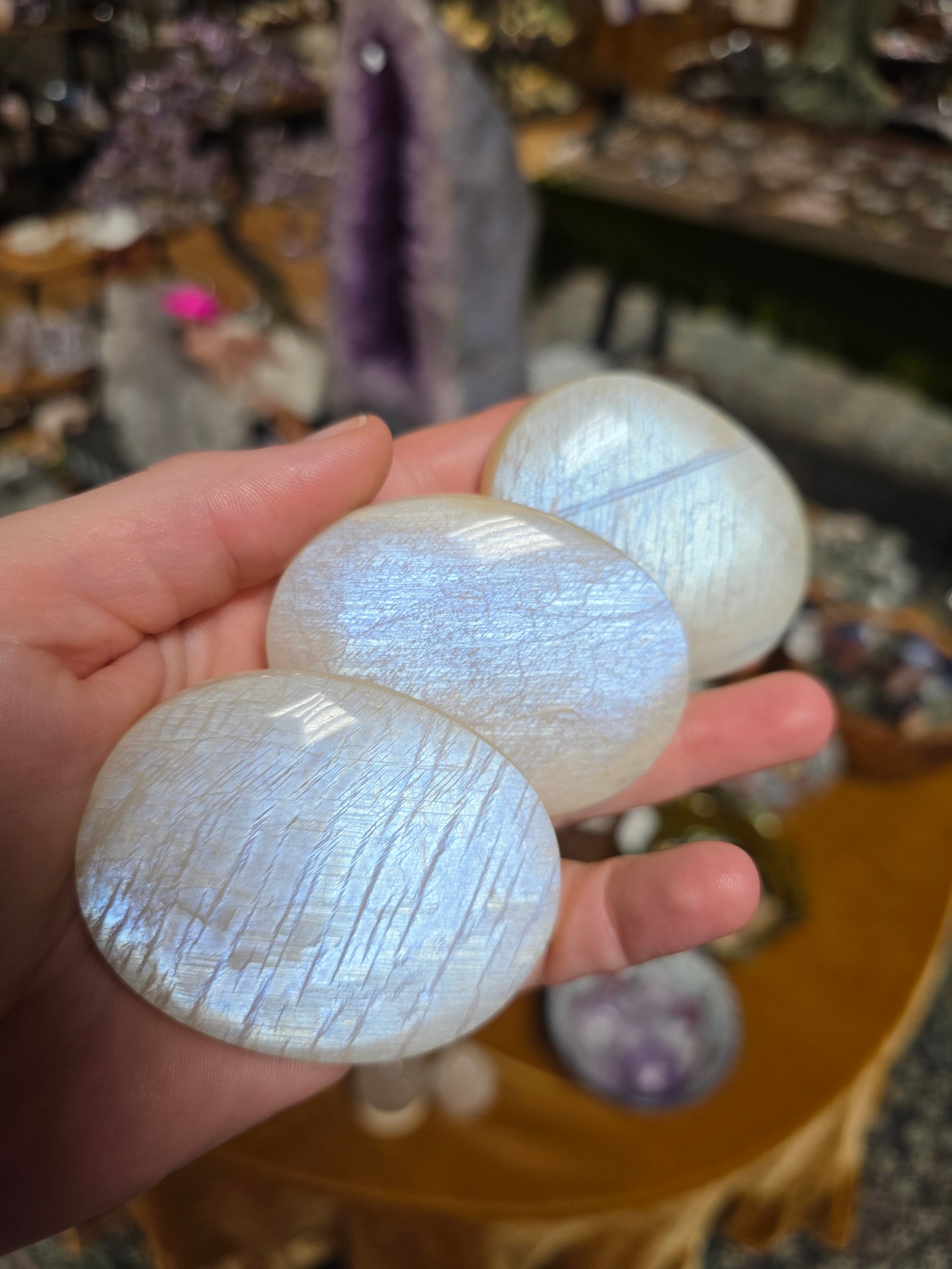 One randomly chosen medium to large moonstone palmstone.